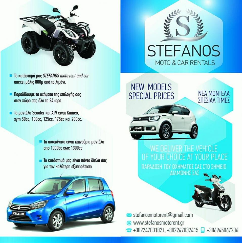 Τα ενοικιαζόμενα μοτοποδήλατα και αυτοκίνητα Στέφανος,